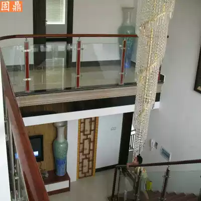 304 glass guardrail Villa stainless steel railing stair handrail Hollow Hall fence River titanium alloy steel wood column