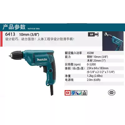 Makita electric drill 6413 household electric drill 10mm electric screwdriver 450W power with speed regulation