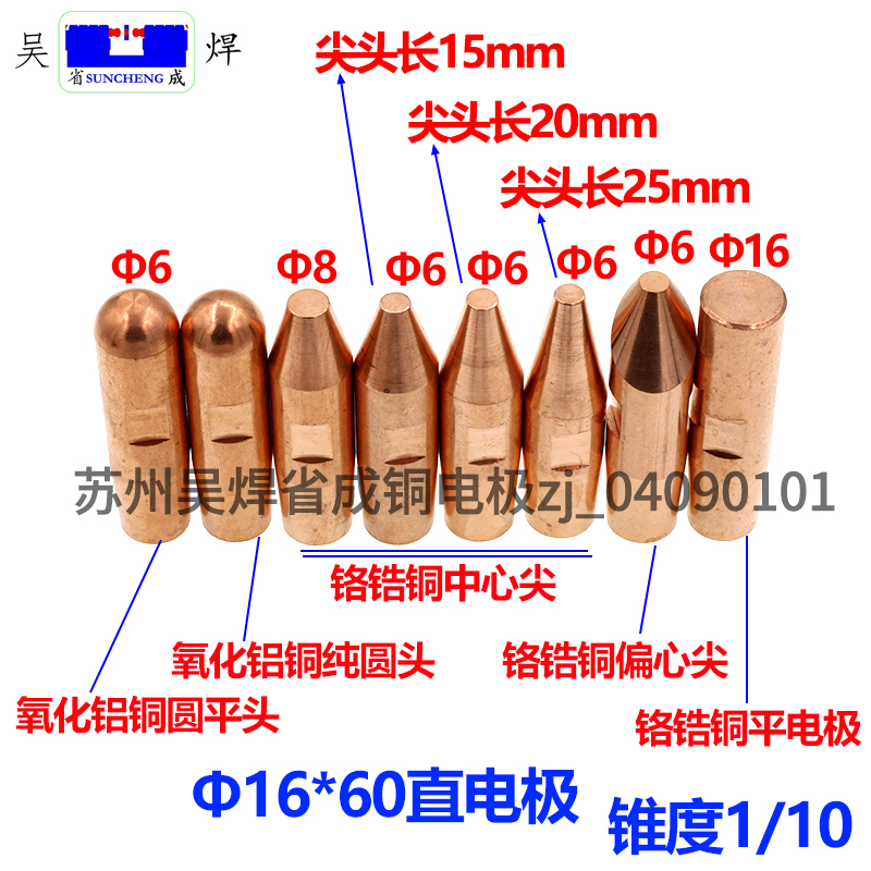 Spot welding electrode spot welding head electrode tip contact welding head Chrome zirconium copper eccentric electrode Φ16*60 Wu welding province Cheng