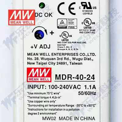MDR-40-24 Taiwan Mingwei 40W24V rail type switching power supply 1 7A regulated PLC sensor