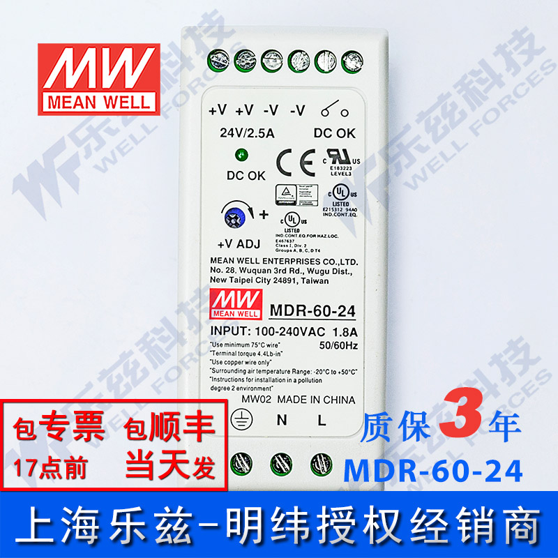 MDR-60-24 Taiwan Mingwei 60W24V din-rail switching power supply 2.5A regulated industrial PLC sensor