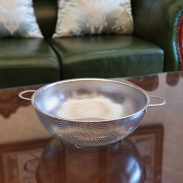 Stainless steel double ear punching basket thicken Tampoo basket fruit basket multi - specification punching net basket