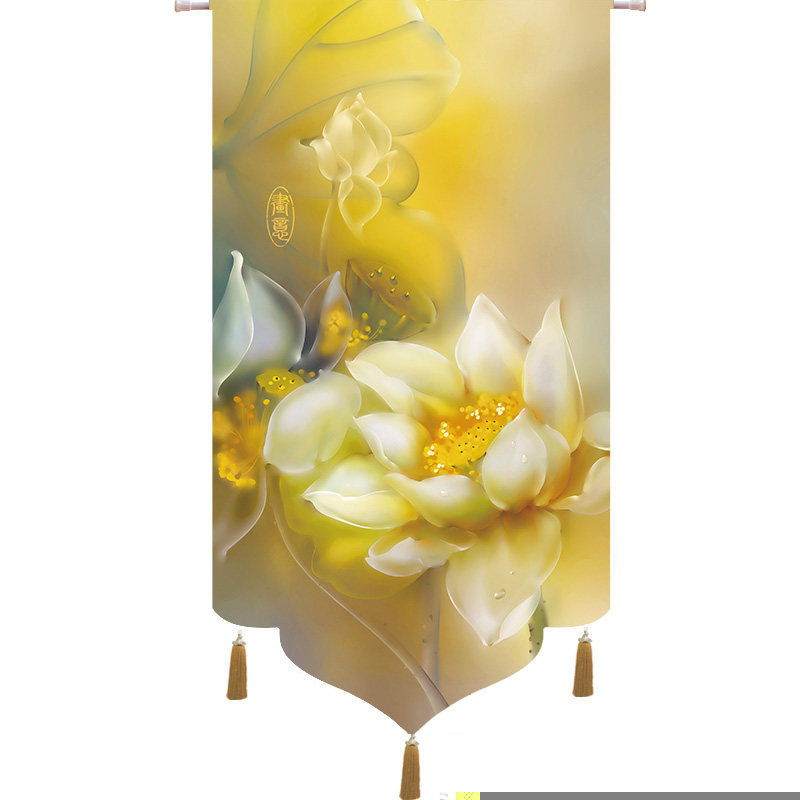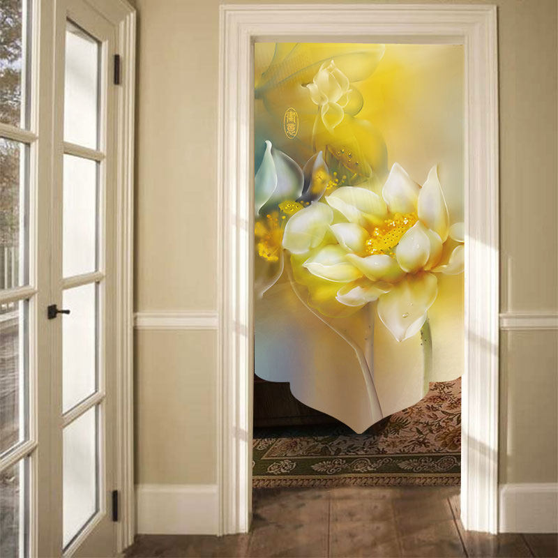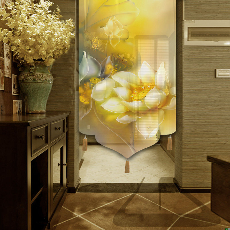 Cloth Art Door Curtain Bedroom MAKEUP ROOM DECORATION LIVING ROOM COMPARTMENT HANGING CURTAIN LOTUS MODERN WATERPROOF SEMI-PERMEABLE NET RED CUSTOM