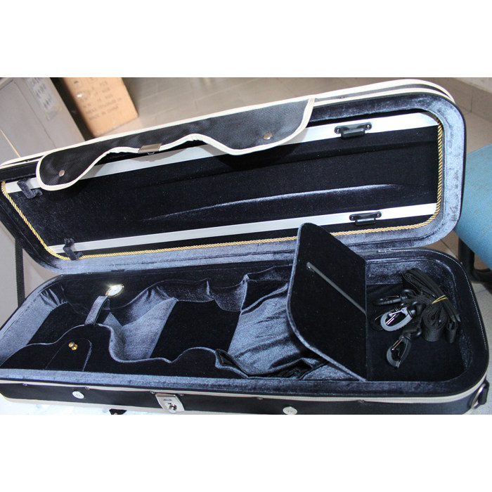 Upscale violin box 4 4 squared box classic with double shoulder back (fit lock hygrometer cellist)