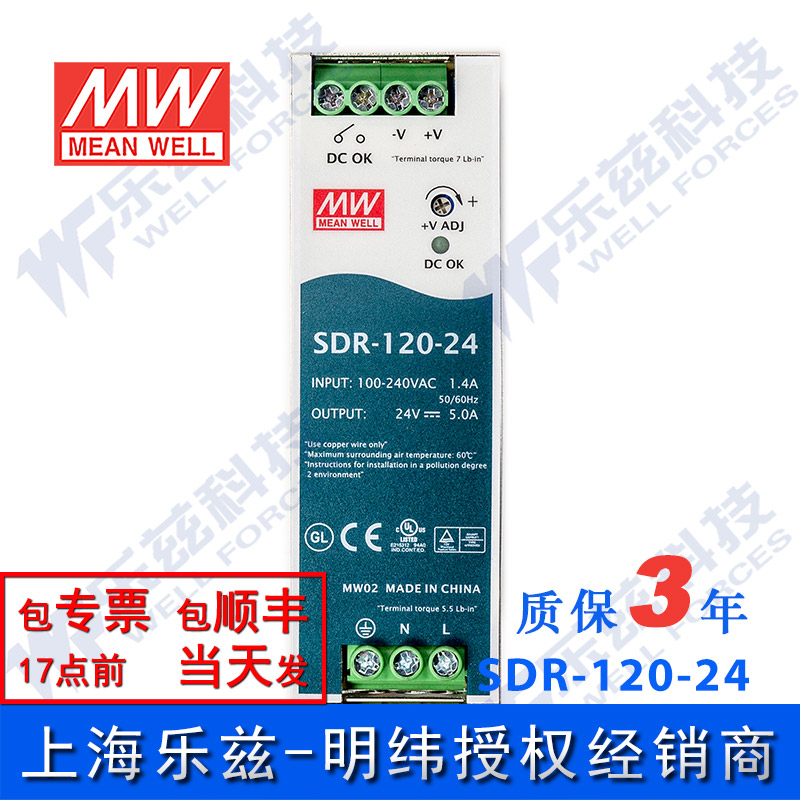 SDR-120-24 Taiwan Mingwei 120W24V rail switching power supply 5A motor drive PLC industrial control belt PFC