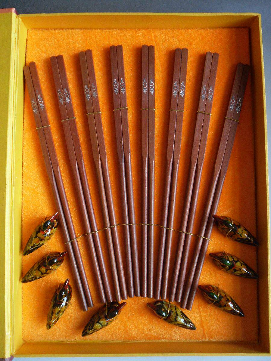 10 pairs of chopsticks (red sandalwood orchid) 6 pairs of chopsticks with duck stand (red sandalwood orchid) 6 pairs of chopsticks (red sandalwood gourd) 10 pairs of chopsticks (red sandalwood gourd) 10 pairs of chopsticks with duck stand (red sandalwood gourd)