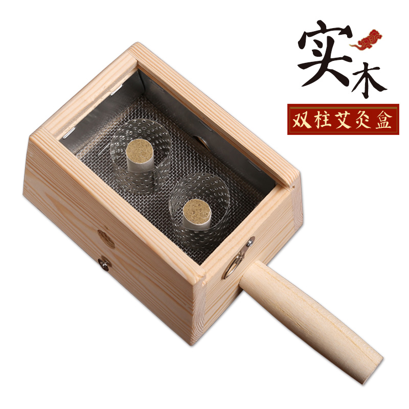 Moxibustion Box Carry-on household 2 holes solid wood Moxibustion Instrument with waist abdomen back cervical spine Leg Knee Joint