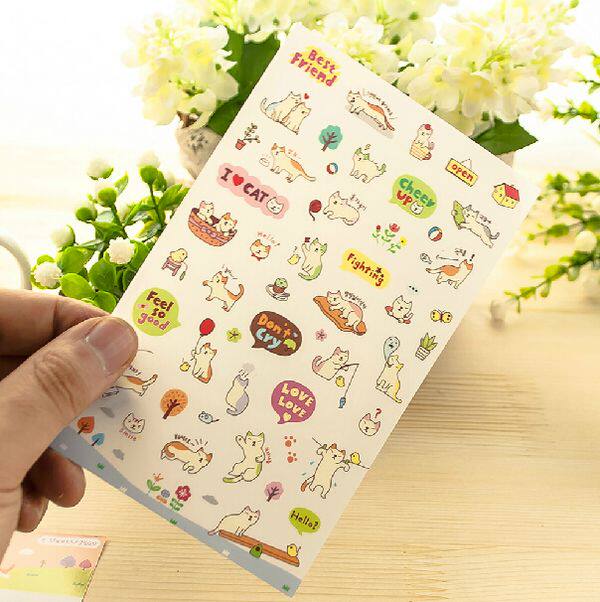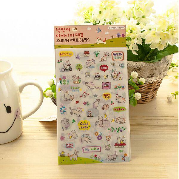 Korean cute cat transparent decoration diary sticker 6 inserts