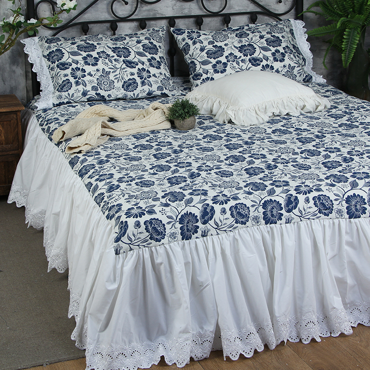 Foreign trade high yarn count cotton bed skirt, bed cover cover, Seiko water soluble embroidery lace bed skirt princess, all-match bed skirt
