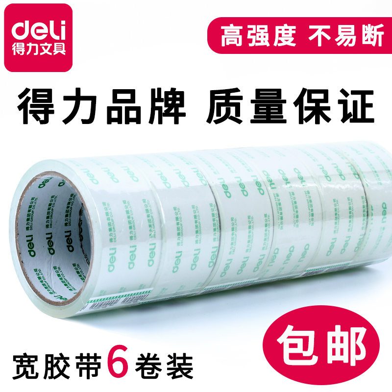 Deli transparent tape Large wide tape packing sealing tape sealing tape large roll width 4.5 6cm