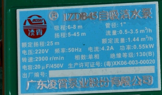 Guangdong Lingxiao 1ZDB35 B self-suction clear water pump 330W pumping water pump IZDB35 0 33KW