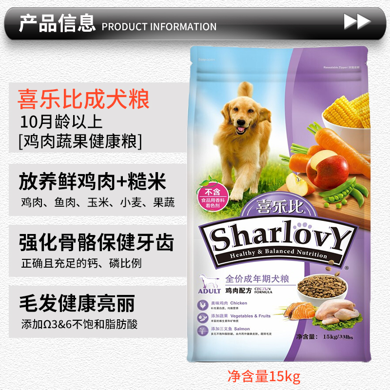 Shelby dog food chicken, vegetable and fruit adult dog food 15kg Teddy VIP golden retriever Labrador dog food universal