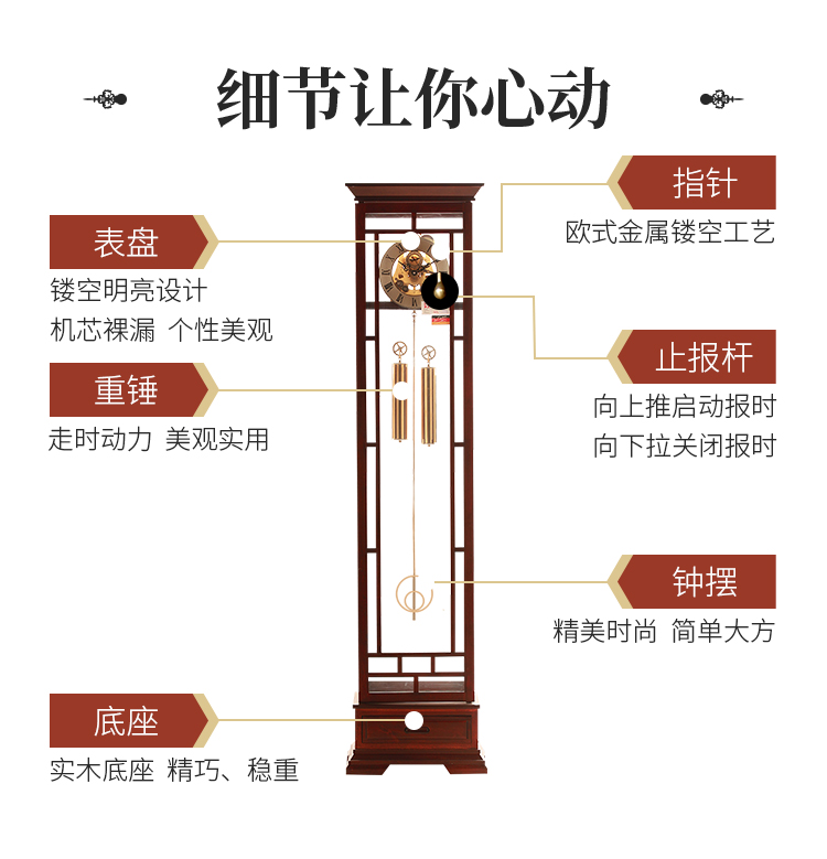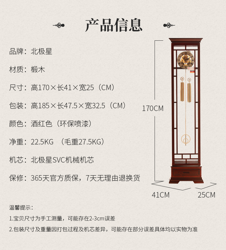 Living room floor clock Polaris vertical creative retro pendulum clock boutique original American decorative chime mechanical standing clock