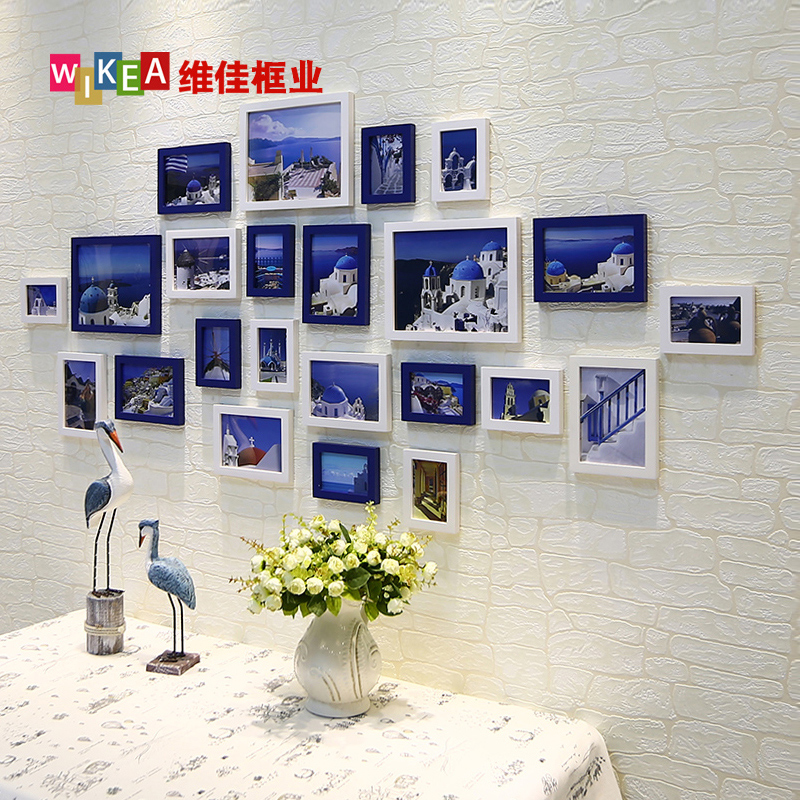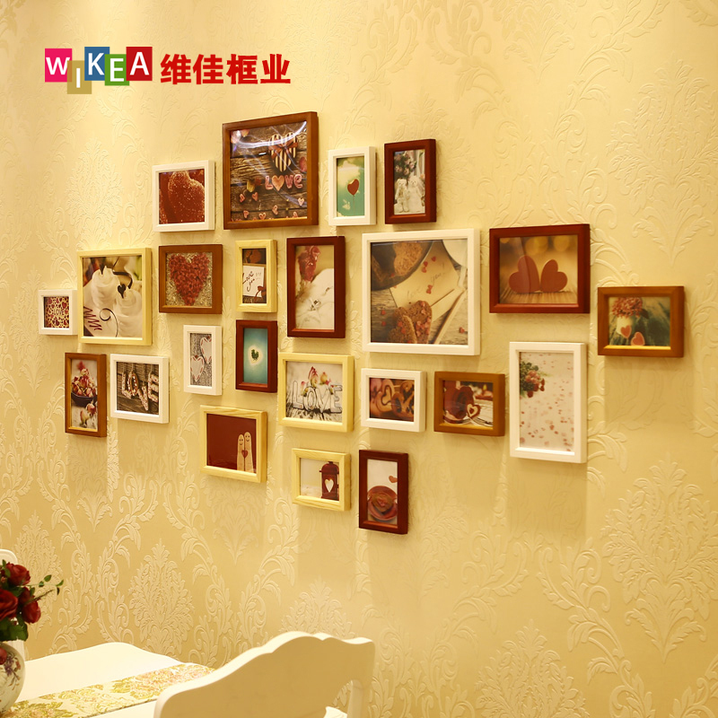 Solid wood photo wall decoration free punch photo frame hanging wall combination creative photo wall bedroom living room European style picture frame