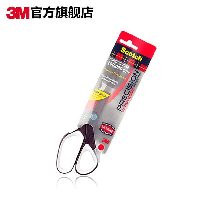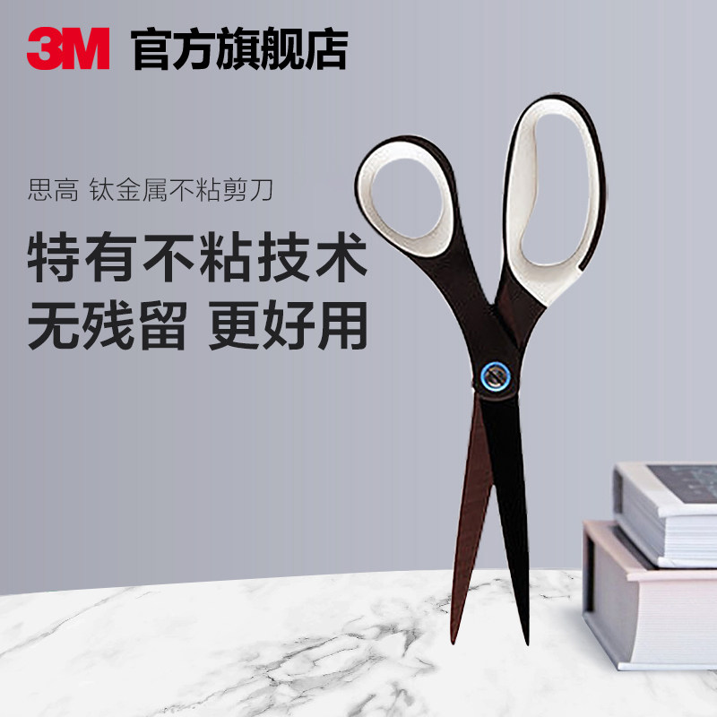 3M Sigao titanium non-stick scissors 8 inch stainless steel body safety scissors paper cutting office stationery handmade art paper cutting knife non-stick coating soft handle scissors plus hard hinge cut smooth