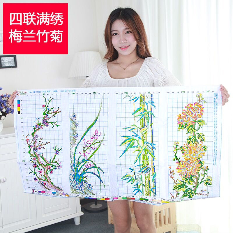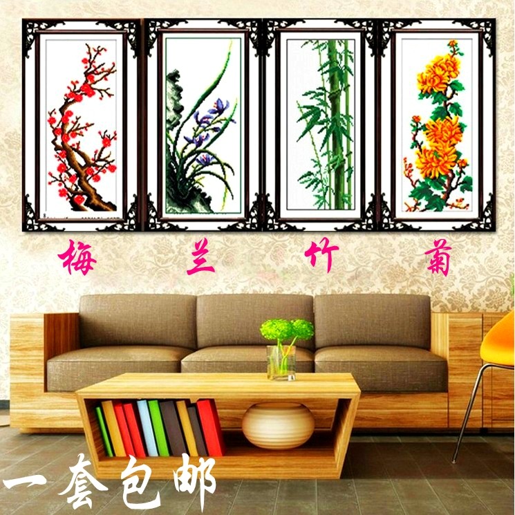 Meilan Bamboo chrysanthemum cross stitch thread embroidery cotton thread Living room Simple modern fresh elegant warm four sets of scenery show