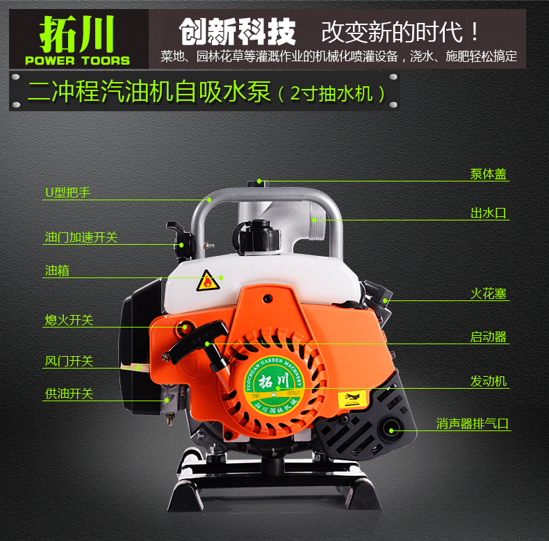 Tuochuan 1 inch gasoline pump two stroke 15 inch self-priming agricultural row irrigation pump garden