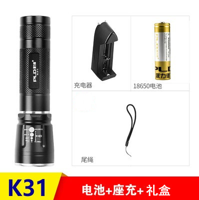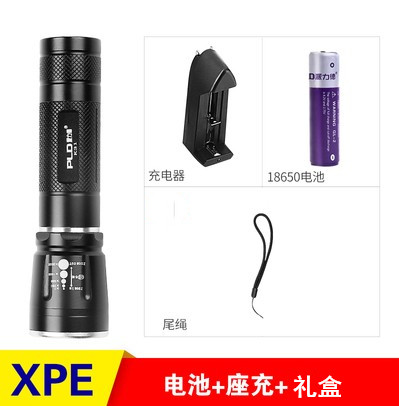 Single flashlight (without battery charger) 1 purple battery set Original flat head with protective plate 18650 battery original seat charger 1 gold battery set 2 gold battery set 2