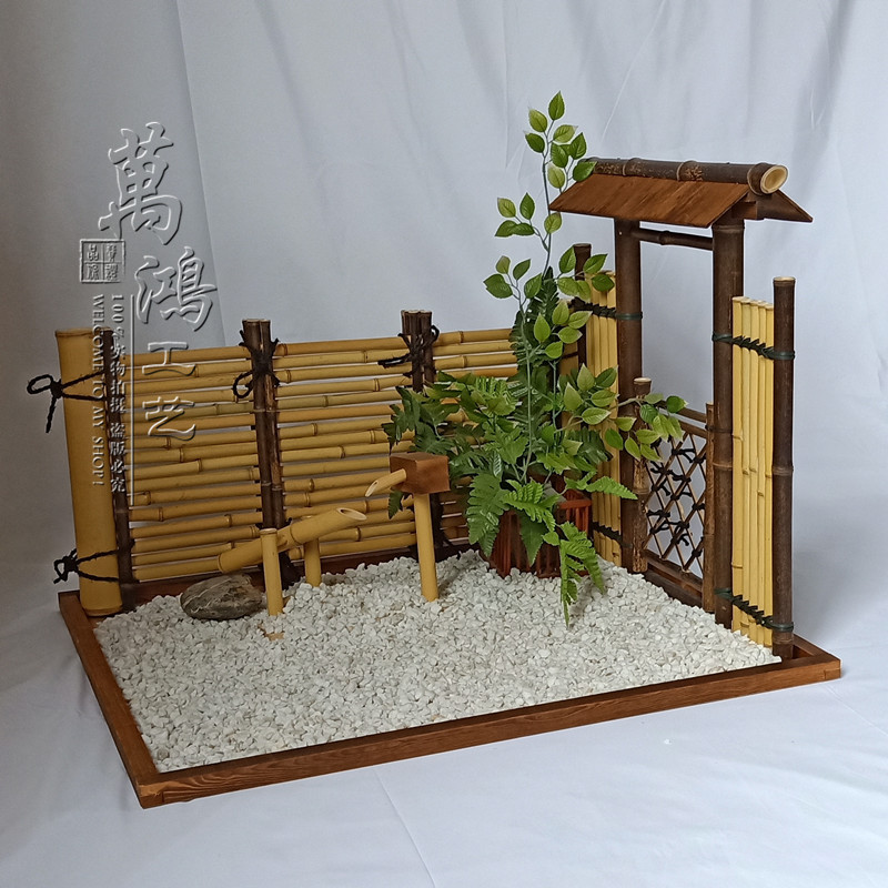 (Fresh and natural)Japanese small garden Home landscape decoration Bamboo and wood courtyard Garden decoration Bamboo fence Zen