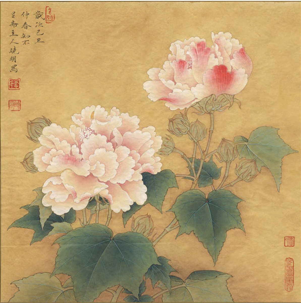 Manuscript of fine brushwork painting--Lin Song Li Di's red and white hibiscus