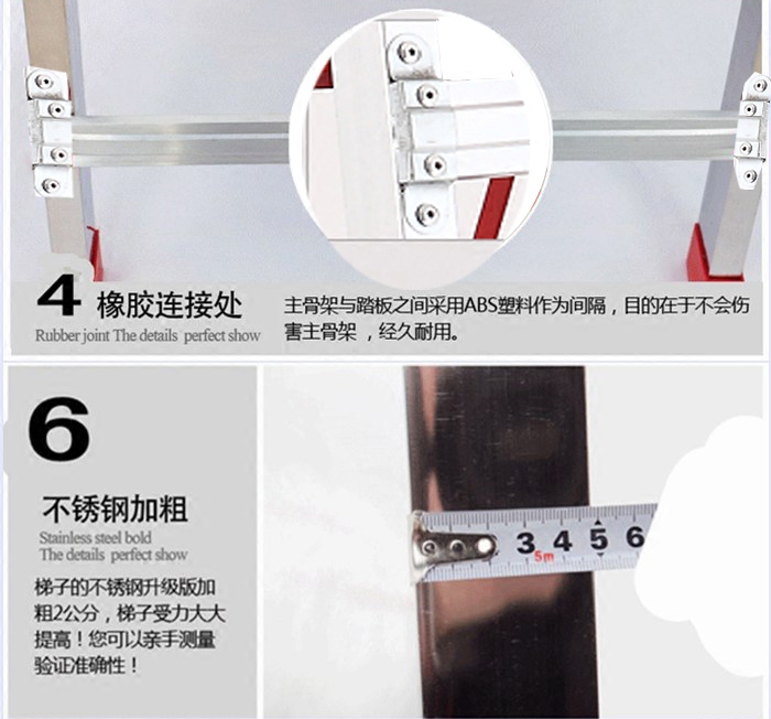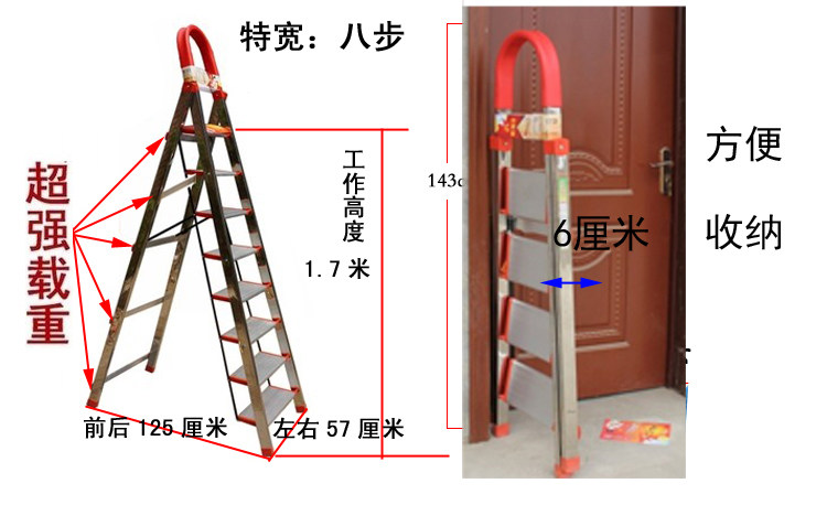 Backgammon ladder home folding five-step mobile staircase thickened stainless steel ladder 8-step herringbone ladder step ladder