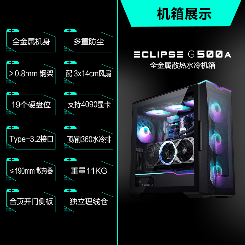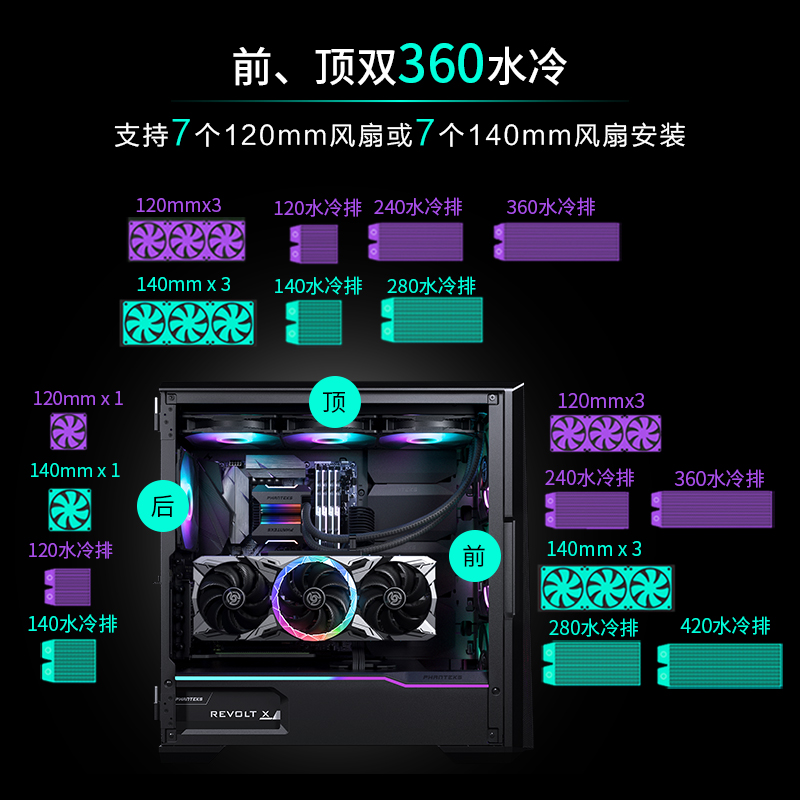 PHANTEKS thumper G500A ARGB lamp effect reinforced heat dissipation double 360 water cooled desktop computer case-Taobao
