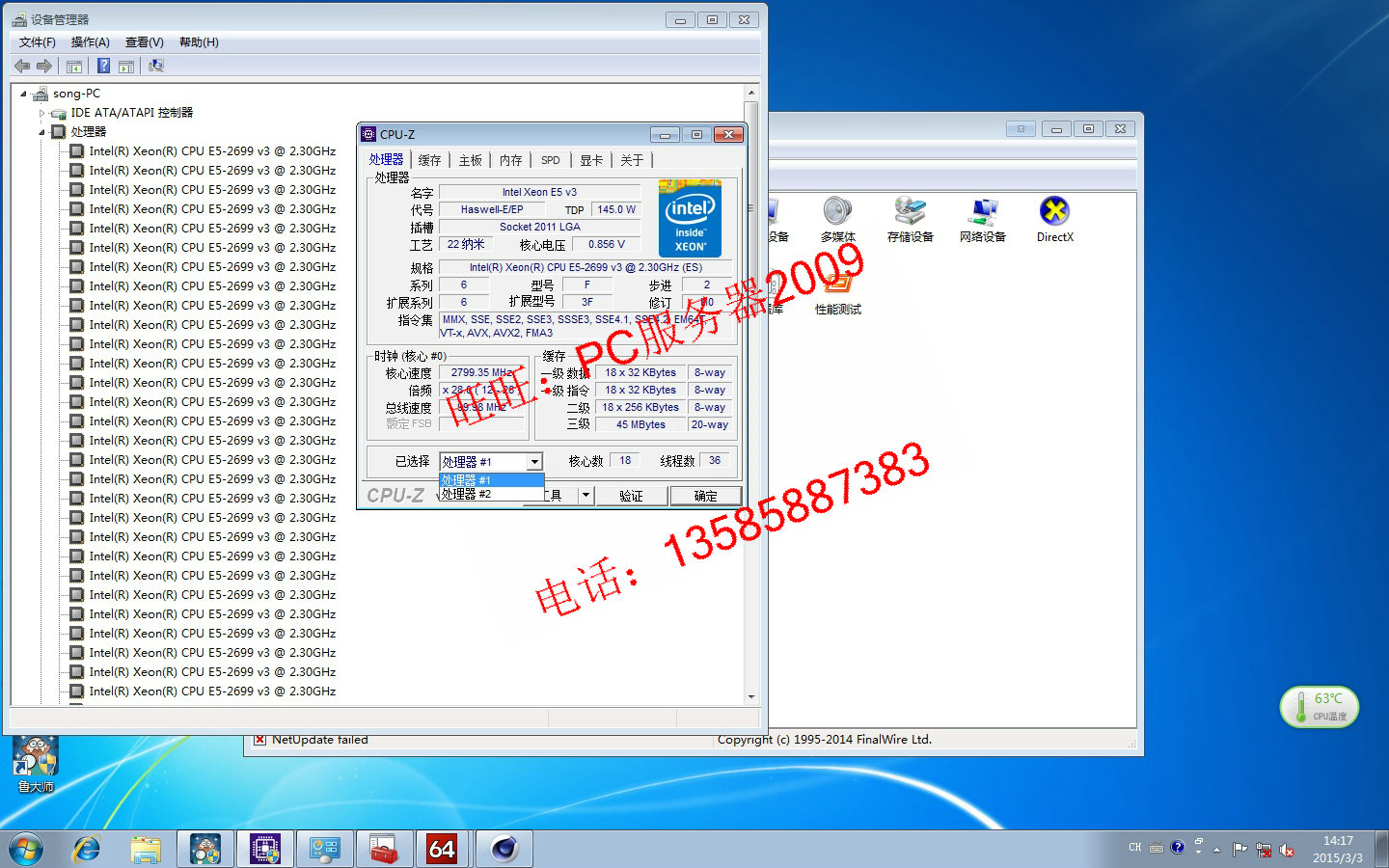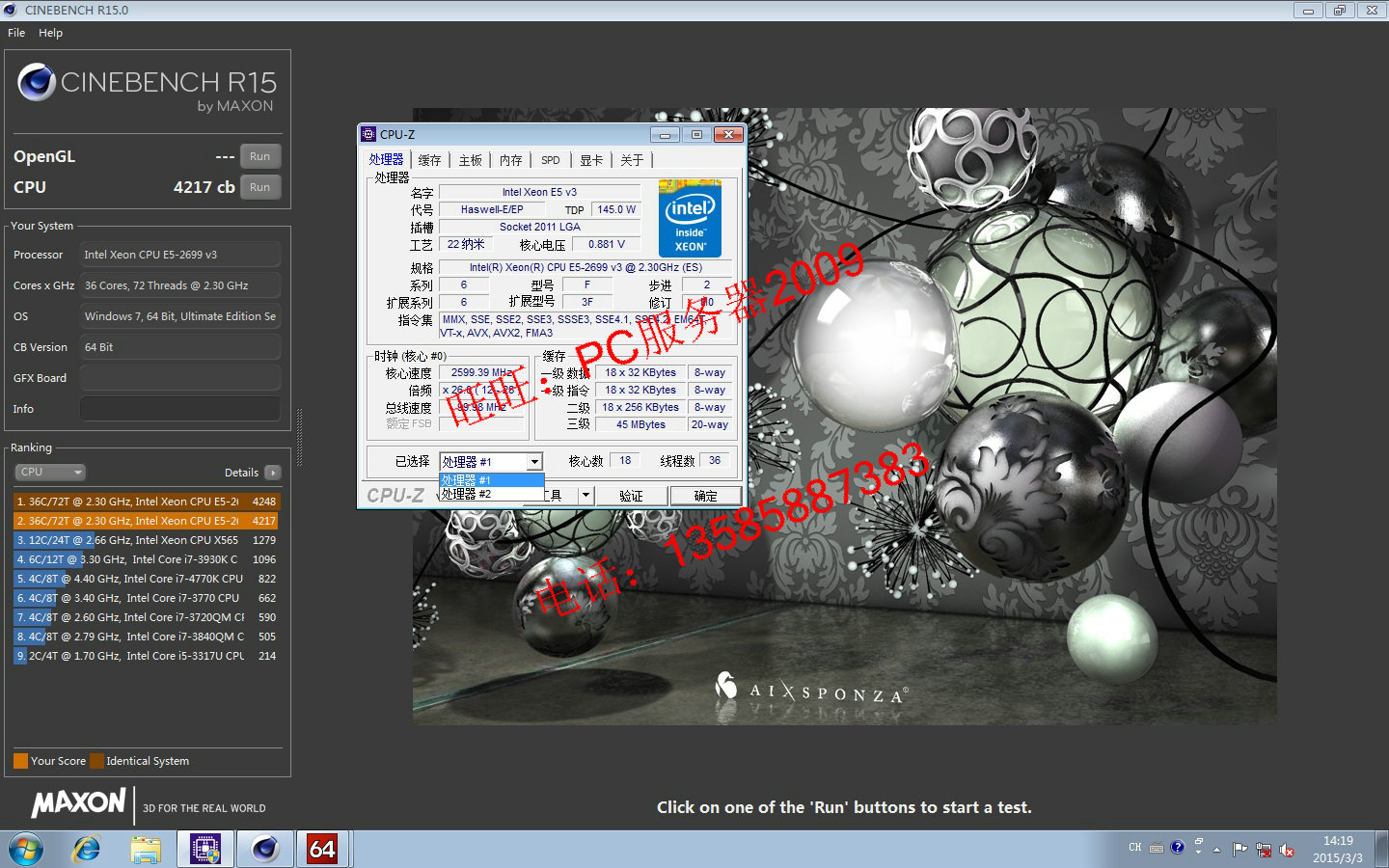XEON E5-2699 V3 QS is showing 36 core 72 thread 2 3G 3D rendering graphics workstation
