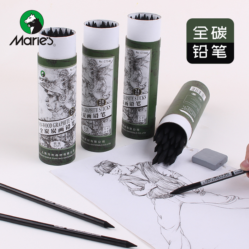 Mulley Carbon Pen Sketching Pencil Soft-neutral Hard Full Charcoal Stick Speed Writing Pencil Paper Roll Environmental Protection