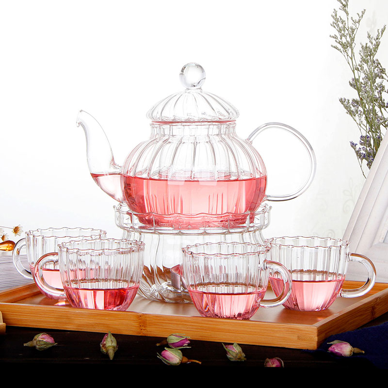 European style net red ins tea set flower teapot set home transparent glass bubble teapot candle heated flower and fruit teacup