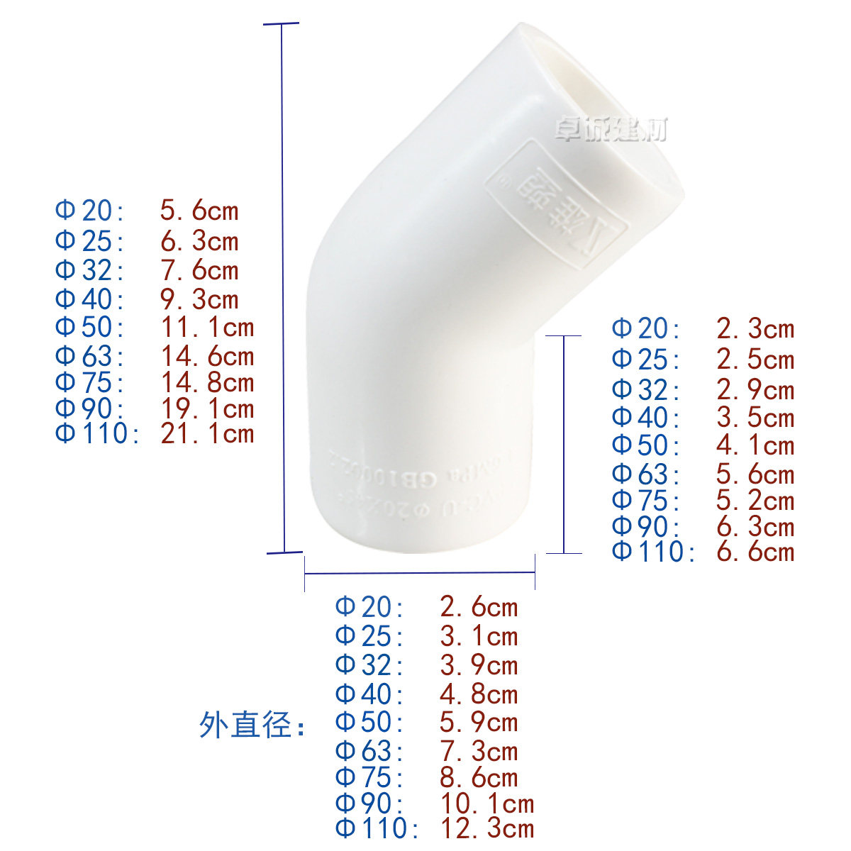 Male plastic PVC water supply pipe fittings 20 25 32 40 50 63 75 90 110 elbow 45°