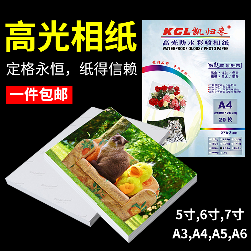 Kei attributed to high light phase paper 5 inch 6 inch 7 inch waterproof color inkjet photo paper A3A4A5A6 photo paper 230g210 gram 180g photo paper 3R4R5R photo paper wholesale print