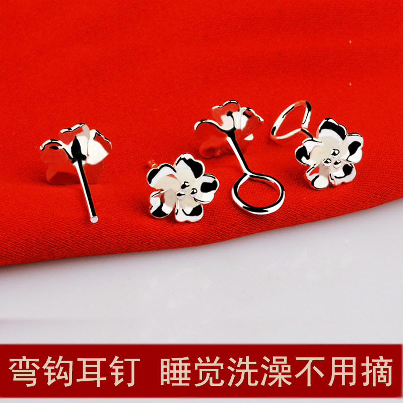 Earrings women's sterling silver 999 rose earrings temperament hook to raise ears for middle-aged and elderly mothers Mother's Day gift