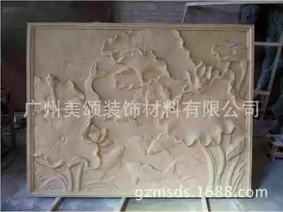 Sandstone relief mural sand rock lotus picture artificial sandstone three-dimensional porch background decoration mural Lotus relief