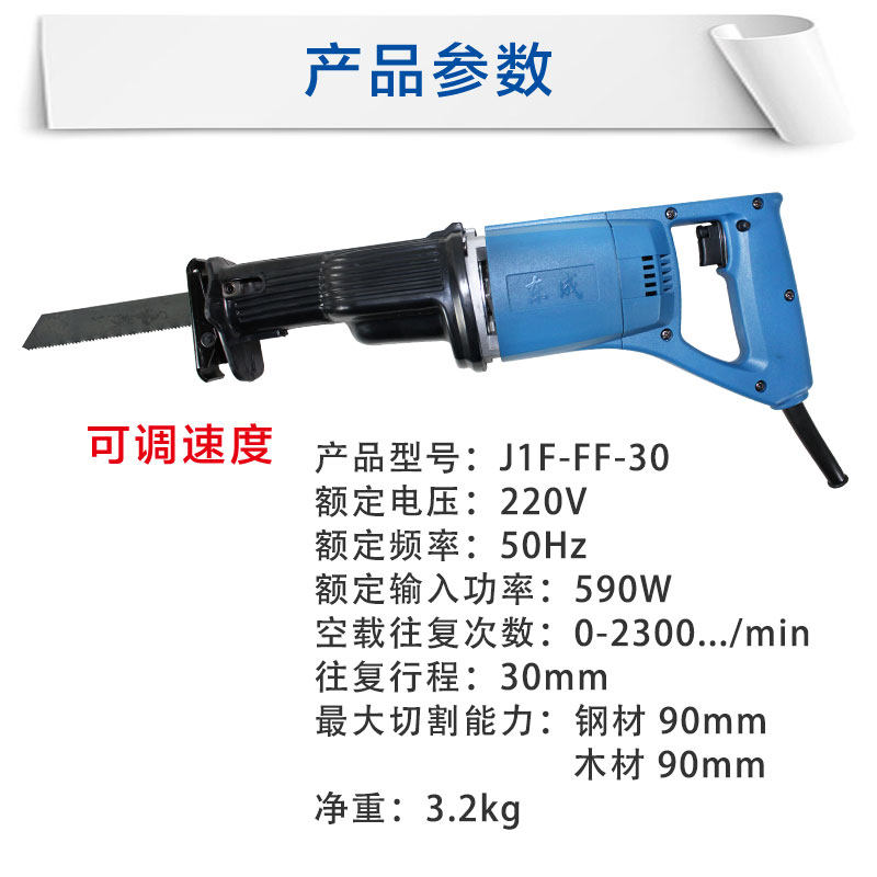 Dongcheng reciprocating saw J1F-FF-30 saber saw woodworking saw metal saw speed control portable saw chainsaw power tool