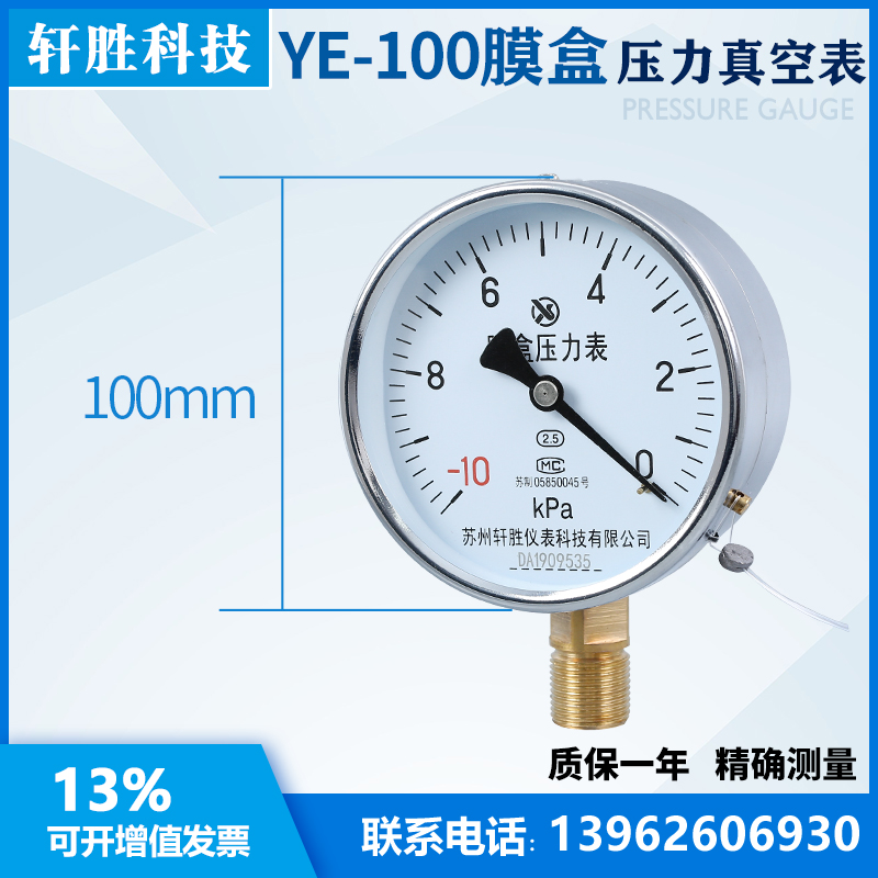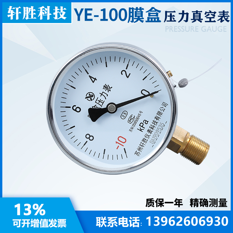 YE100 -10kPa - 0 vacuum film case pressure meter micro negative pressure film case Suzhou Xuan meter