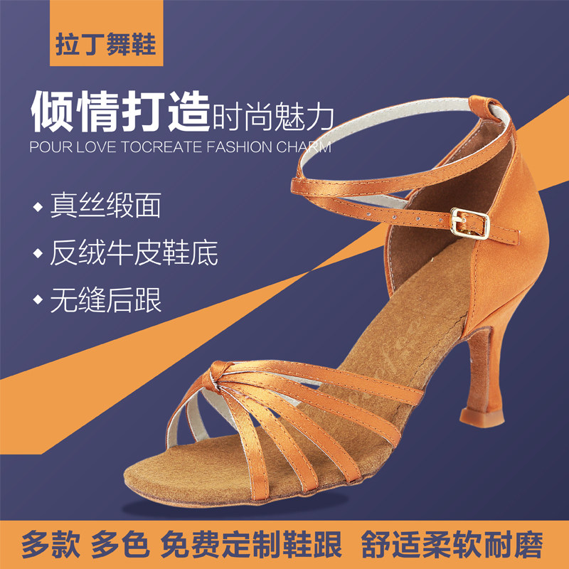 Latin Dance Shoes Women Adults Soft Bottom With High Heel Satin Standard New Square Dance Lady Dance Shoes