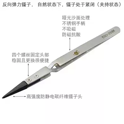 ESD-259X Interchangeable head Anti-static straight pointed nose tweezers Stainless steel reverse fixture Electronic repair tool