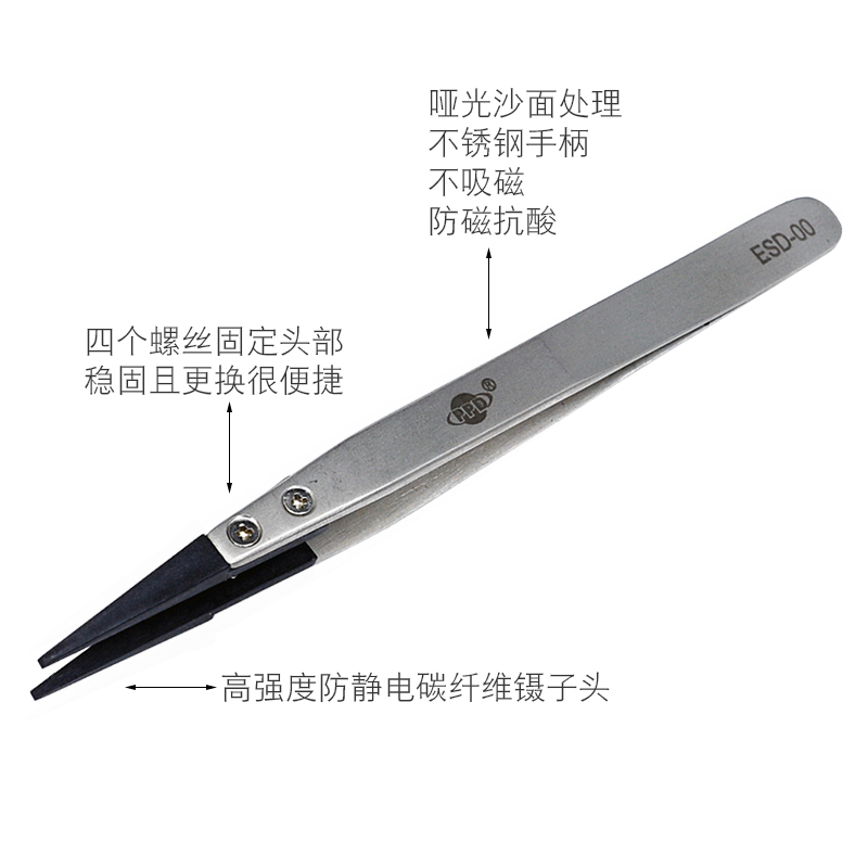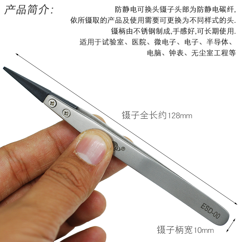 PPD ESD-00 Interchangeable head anti-static tweezers carbon fiber plastic tweezers head flat mouth flat head tweezers stainless steel