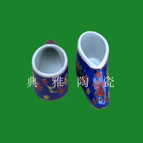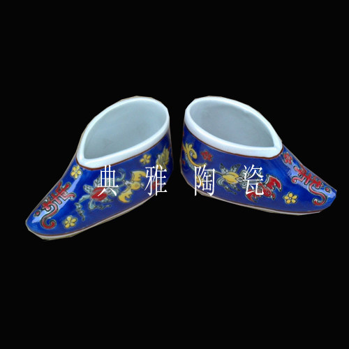 Jingdezhen Porcelain Three Inch Shoes Handmade Pink Blue Wan Flowers Women's Shoes Home Furnishing Decoration Craftsmanship Gifts Hem Ceramics