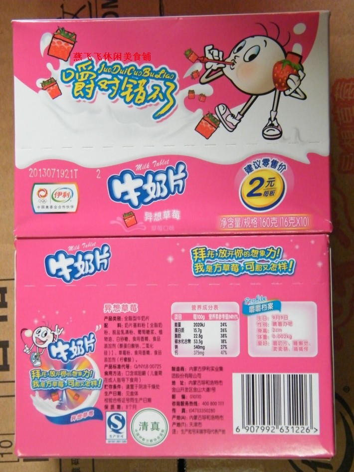 160g Milky Milk Flakes Strawberry Taste (16 gr * 10 plates) Leisure children snacks 5 boxes above