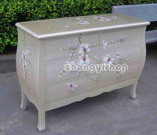 New Chinese pastoral furniture pearl white series six-bucket cabinet dining side cabinet large belly closet