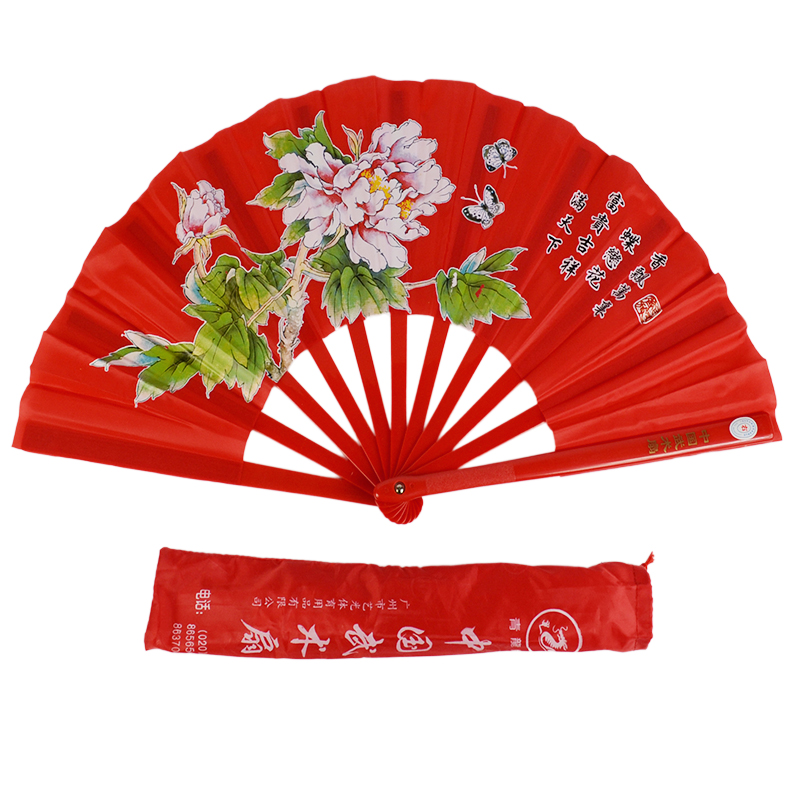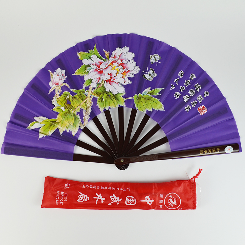 Qinglong brand Taiji kung fu fan Ring fan male and female Square dance fan dance fan peony fan Chinese martial arts fan