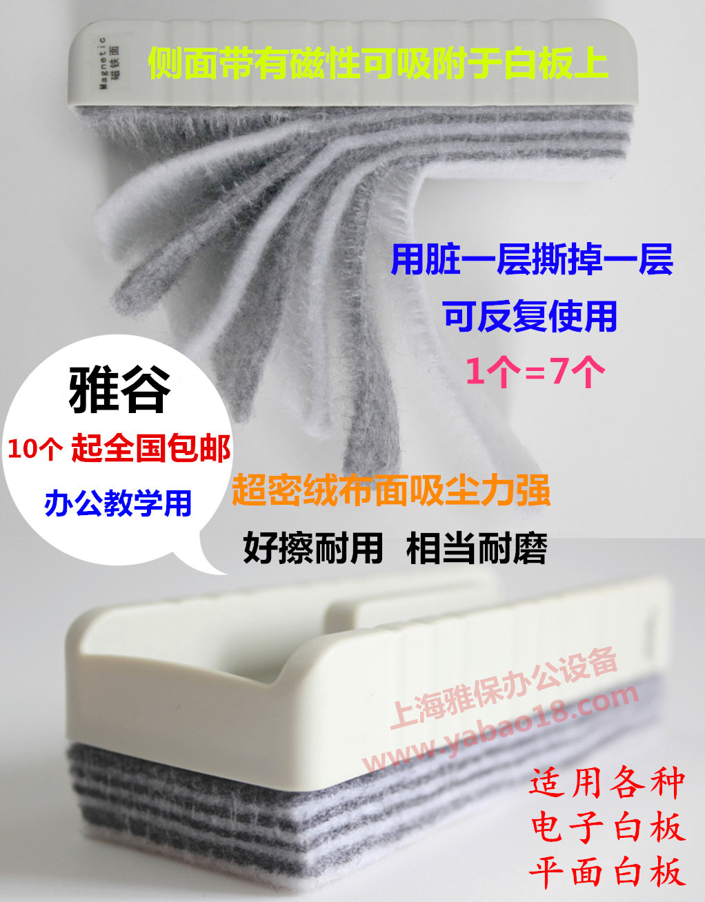 Whiteboard wipe Multi-layer fluff eraser 7-layer vacuum whiteboard brush Dust-free durable eraser Magnetic green eraser blackboard brush