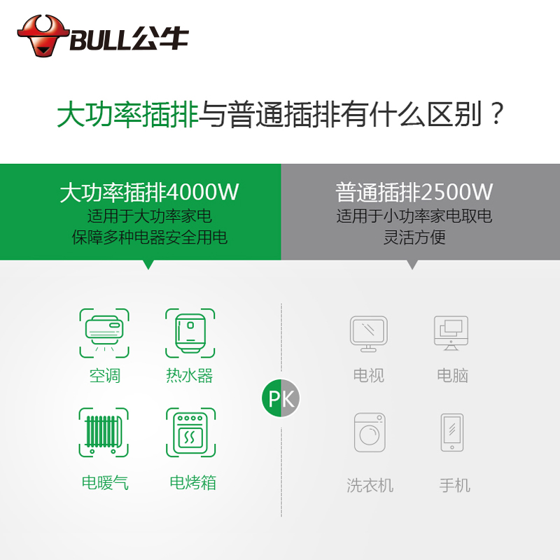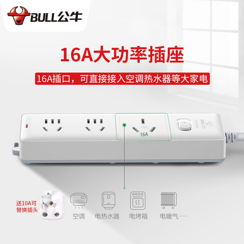 Bull air conditioning socket special large hole plug row three plug 16 amp conversion row plug 16a to 10a extension extension line small