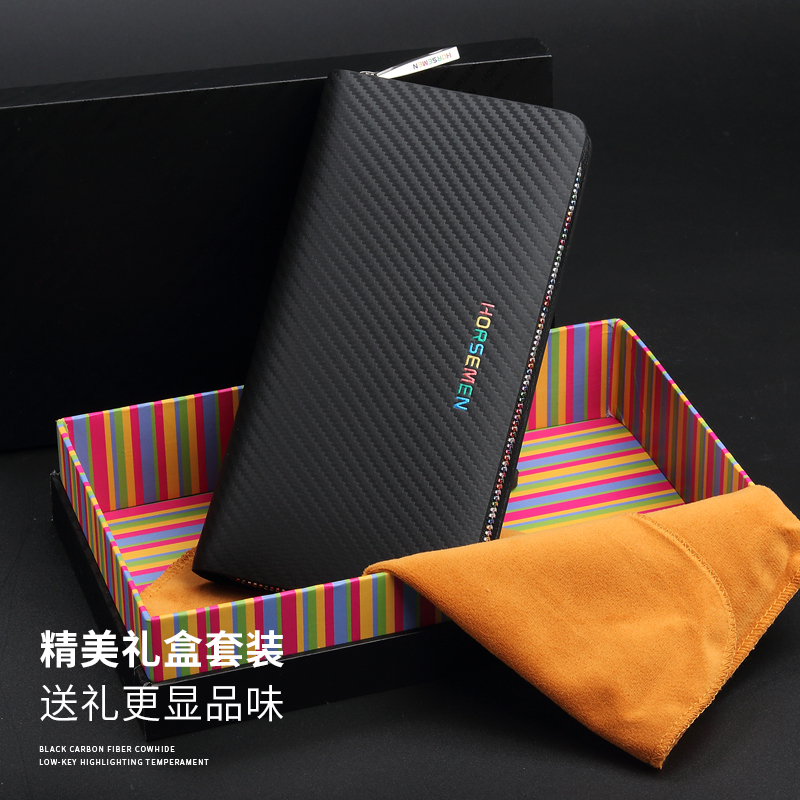 Horsemen New Carbon Fiber High-end Pull Chain Long Wallet Men's Handbag Genuine Leather Tide Cards Casual Personality Hand Grab Bag