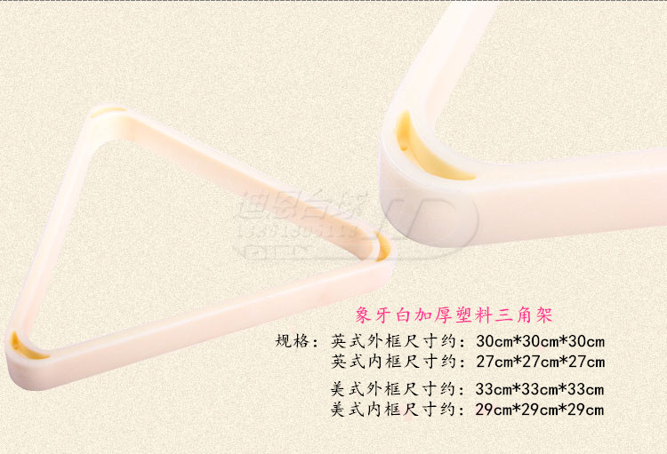 American 5.7 large black plastic 1 British 5.25 small black plastic 1 ivory 5.7 American large plastic 1 ivory 5.25 British small plastic 1 American 5.7 large wood 1 British 5.25 small wood 1 wooden diamond nine-ball rack 1