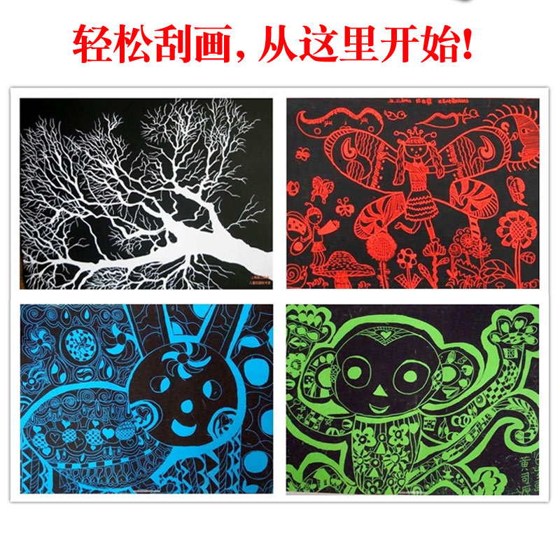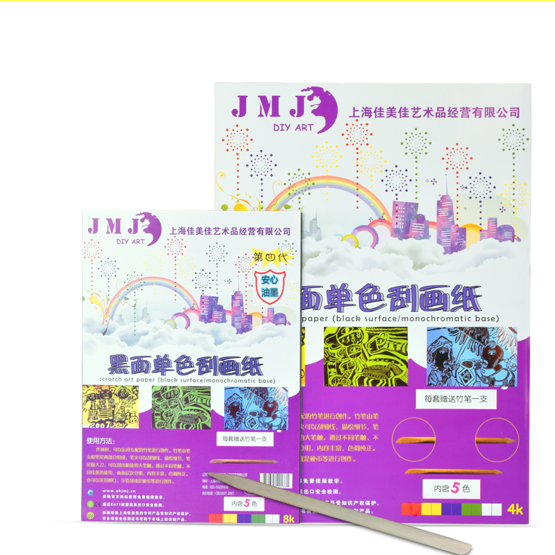 Some jiameijia monochrome scratch paper 4k 8k children's color painting paper send nylon board brush bamboo pen