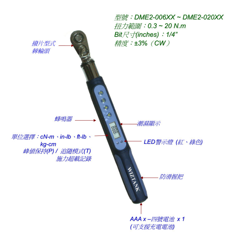 DME2-006BN 0 3-6Nm 1 4-inch Mini Digital Torque Torque Wrench Taiwan WIZTANK