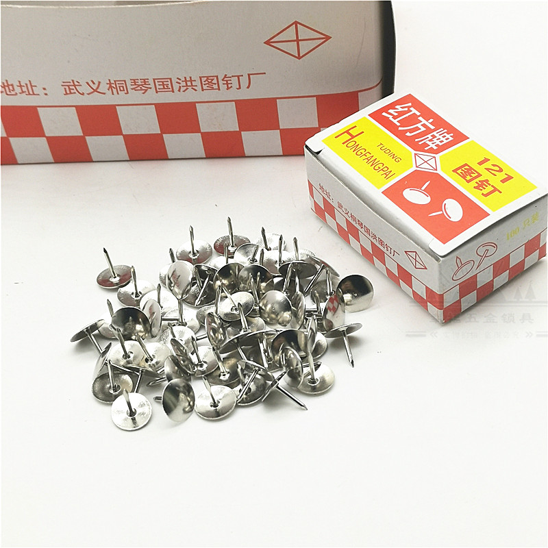 Red square pushpin press nail can be nailed to the wall Nickel plated tack press nail figure Ding I-shaped nail Round head small pushpin decorative nail
