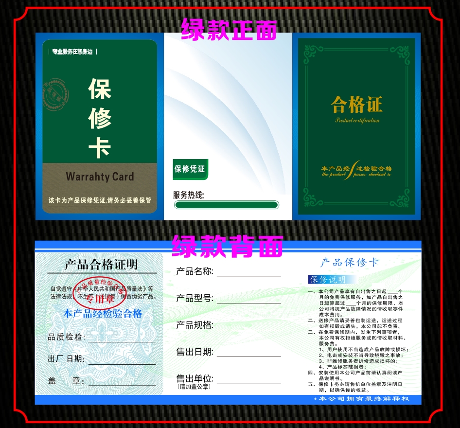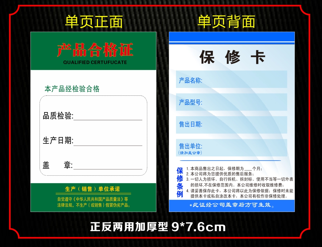 Three - fold product certificate Warranty card dual - side double - sided copper printed paper card 100 sheets